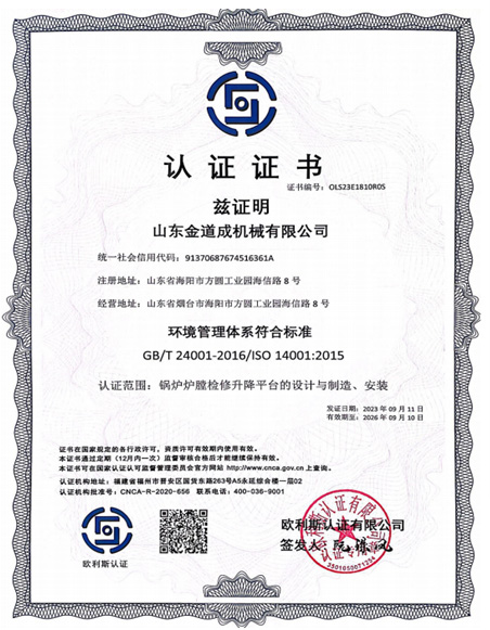 部件采用模块化设计成满膛结构,淘汰回型结构镂空的空缺(工作走台满膛平铺无盲区);去掉折叠平台走台上的斜拉索,设计成下撑杆式的折叠走台,极大地方便了工作走台上的人员无障碍行走。循环流化床锅炉可以直接在炉底风帽上组装完成,煤粉锅炉可以在运转层检修人孔以下0.5米左右的标高位置安装(可配套设置冷灰斗专用的我公司专利产品:煤粉锅炉灰口支撑平台),把检修升降平台由运转层平台人孔门运进炉内,直接在搭设好的灰口支撑平台上组装。